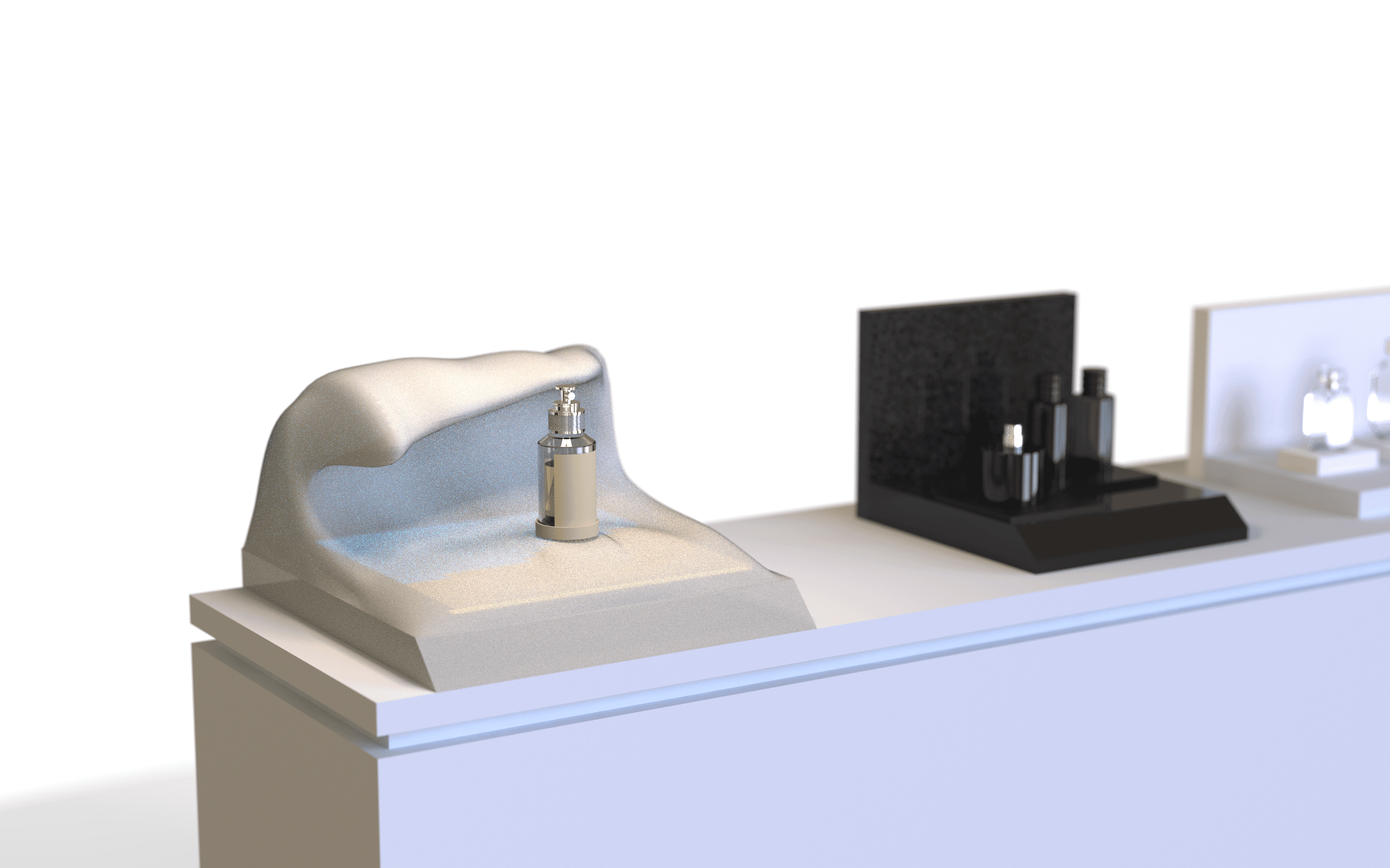 We imagined a living retail surface that responds to human presence. Instead of simply displaying a product, the installation expresses the personality of the selected perfume through fluid motion and light gestures inspired by its unique notes.