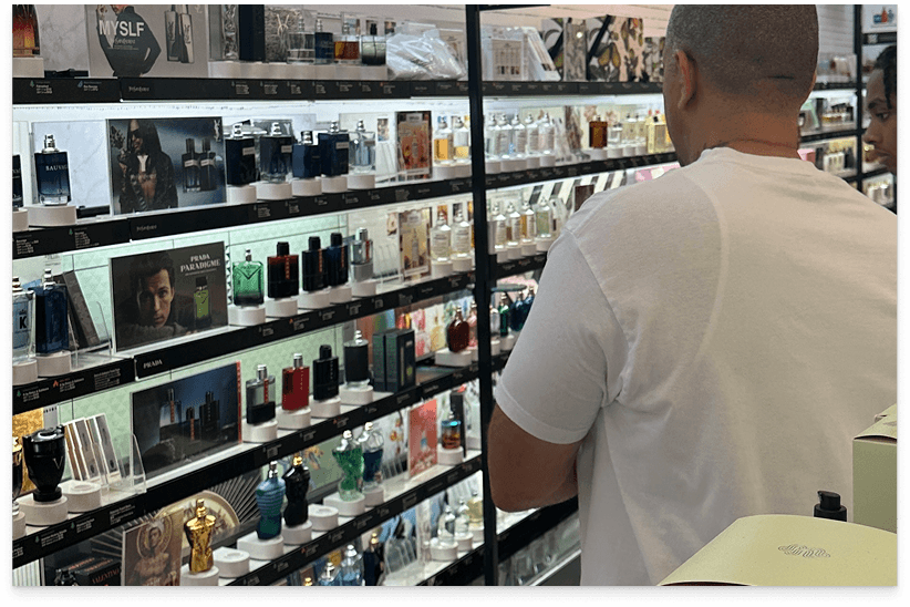 Fragrance discovery is driven by emotion online, but that emotional context disappears in physical retail. In-store displays are largely static and visually uniform, making it difficult for customers to feel a scent’s personality at the moment of purchase.
