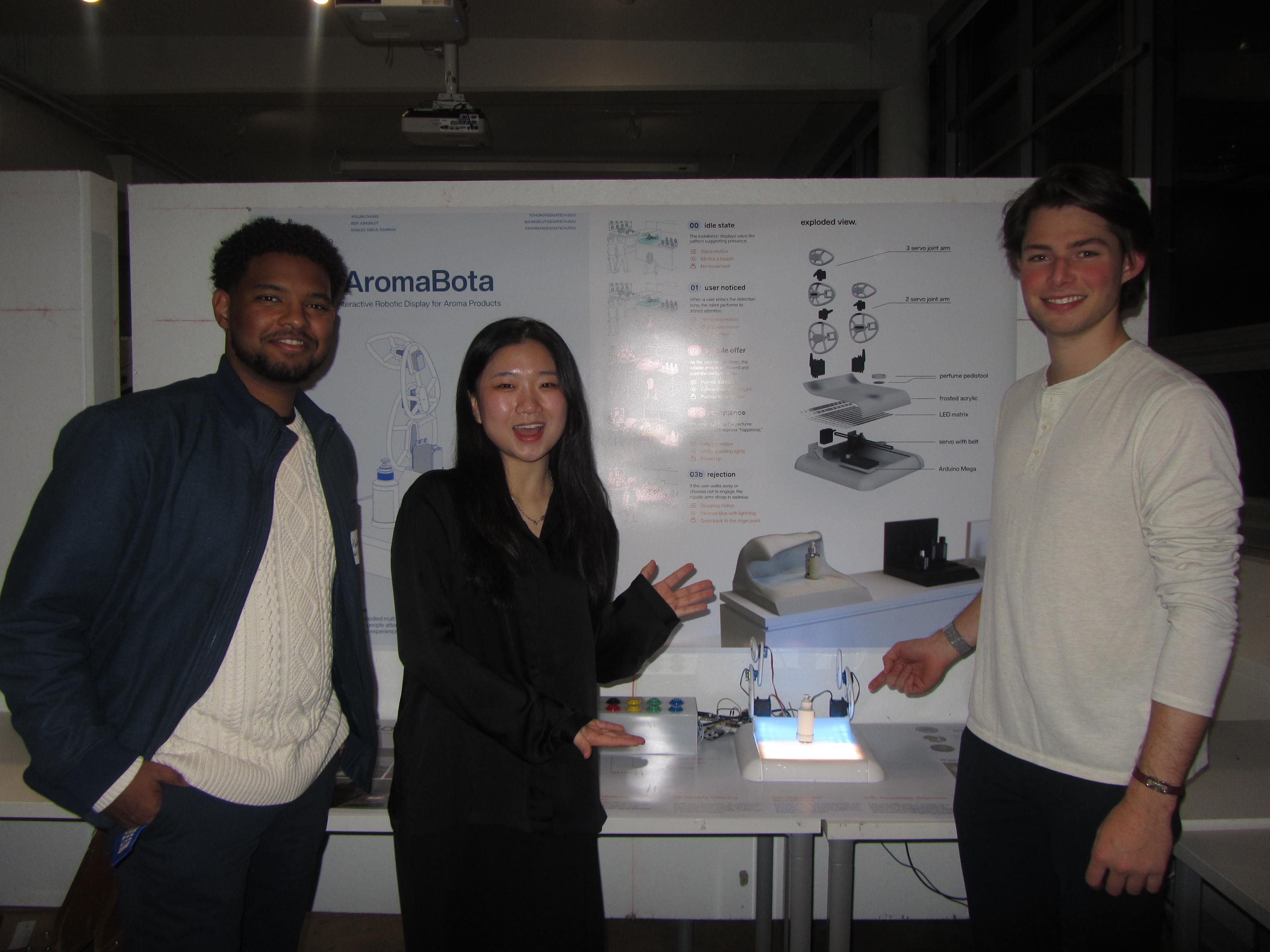 Aroma-bota explores how physical retail can reclaim the emotional richness of digital discovery through embodied, multi-sensory interaction. Designed as an interactive robotic installation for fragrance retail, the project bridges the gap between emotionally charged online storytelling and static in-store displays.